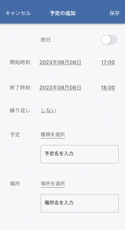 グループウェア上で設定したアラーム一覧を、アプリでも確認できます。(※プッシュ通知は届きません)