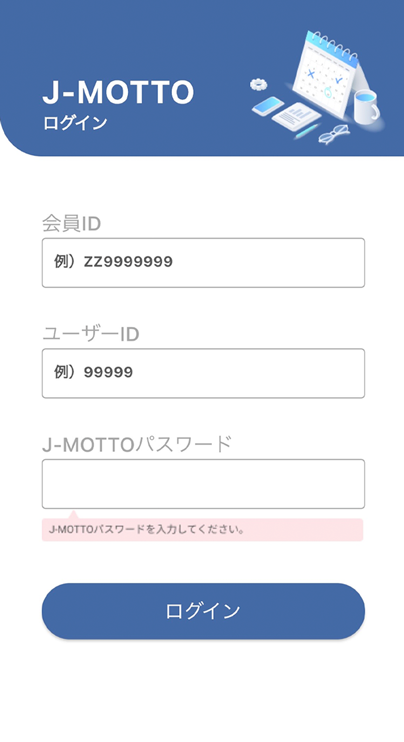 アプリ経由でPC版・スマートフォン版のJ-MOTTOグループウェアにログインします。