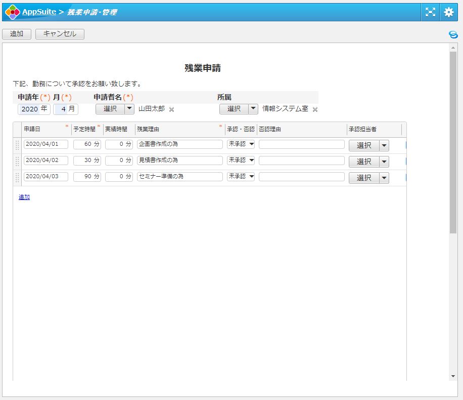 AppSuiteは、紙・メール・Excelで行われている様々な業務処理を誰でも簡単にWebシステム化できるツールです。AppSuiteで現場主導の業務改善を実現できます。