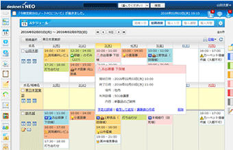 会社のスケジュールとプライベートなスケジュールを一元化することができるので、複数のカレンダーを見る・作成する手間が省けます。プライベートな予定の非公開設定も可能。スケジュール登録時にスマートフォンなどがインターネットに接続されていなくても、接続環境へ移動した時にスケジュールを自動で双方向同期します。