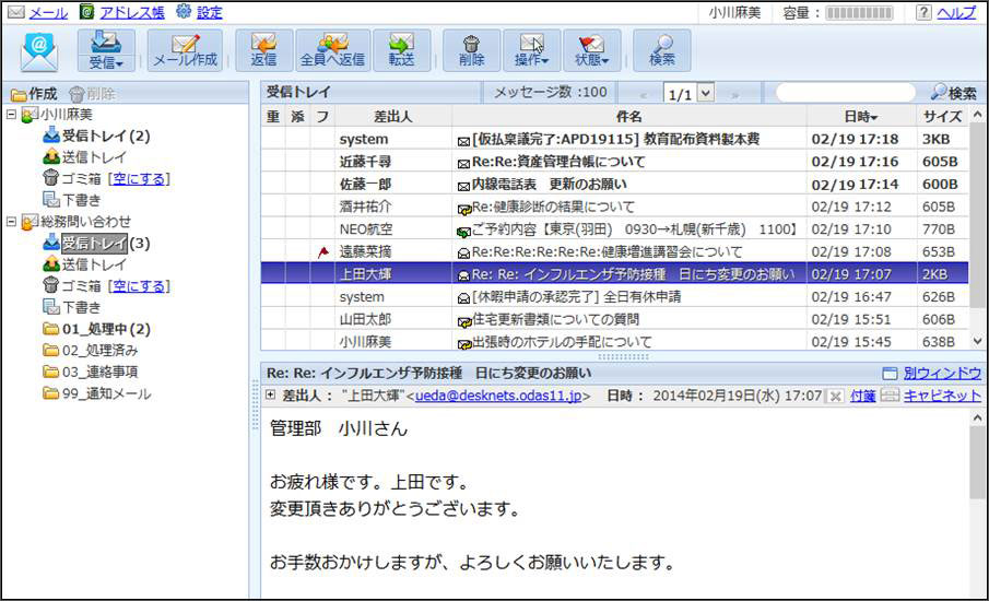 パソコンのメールソフトと同じ操作性で使いやすいウェブメーラーです。