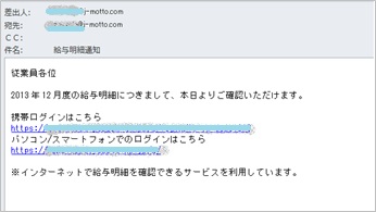 Web給与明細サービス上に明細を公開した際、各社員にメールで通知することができます。
