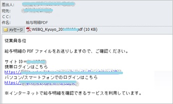Web給与明細サービス上に公開した明細のPDFを、直接メールに添付し、送信することもできます。