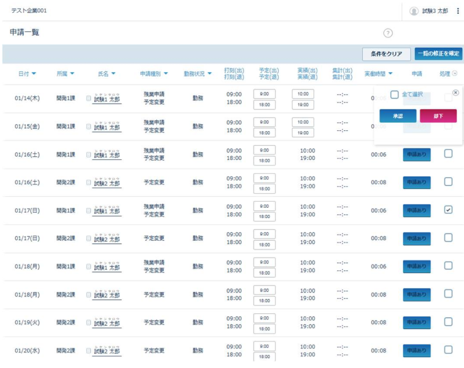 残業・遅刻・休暇などの申請および 「承認・却下」を行なうことができます。