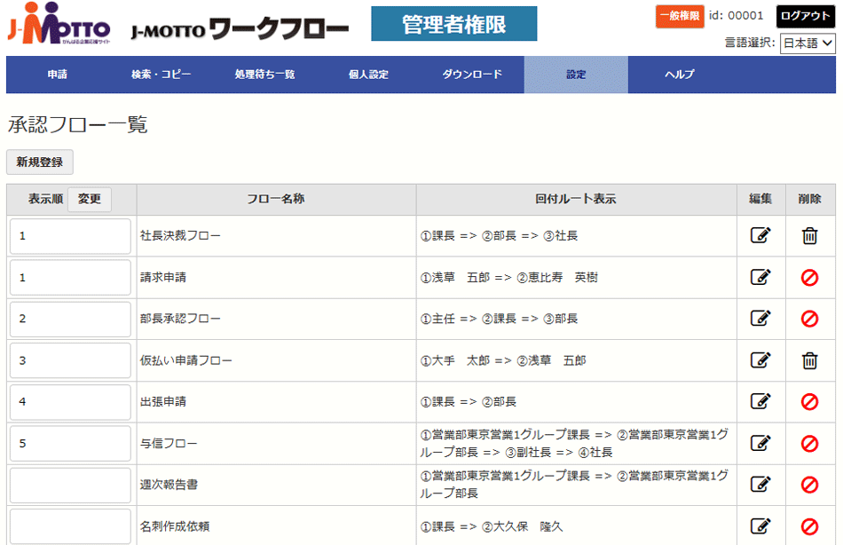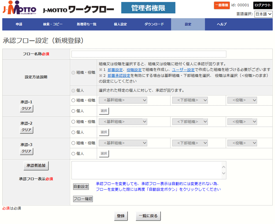 申請書の種類ごとに承認フローを設定