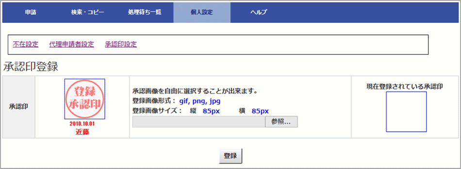 承認印を自由に設定